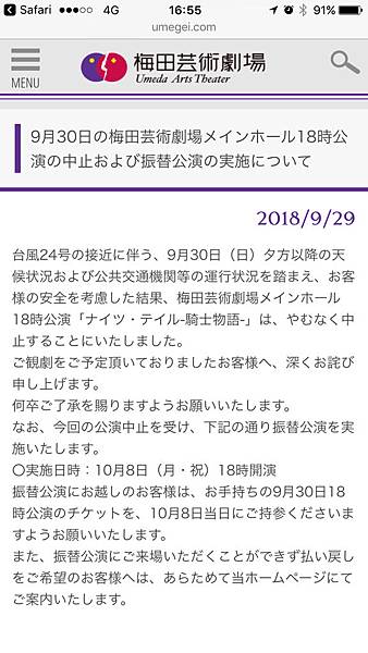 「ナイツ・テイル―騎士物語―」梅田芸術劇場―新着情報:9月30日公演中止及び振替公演の実施について
